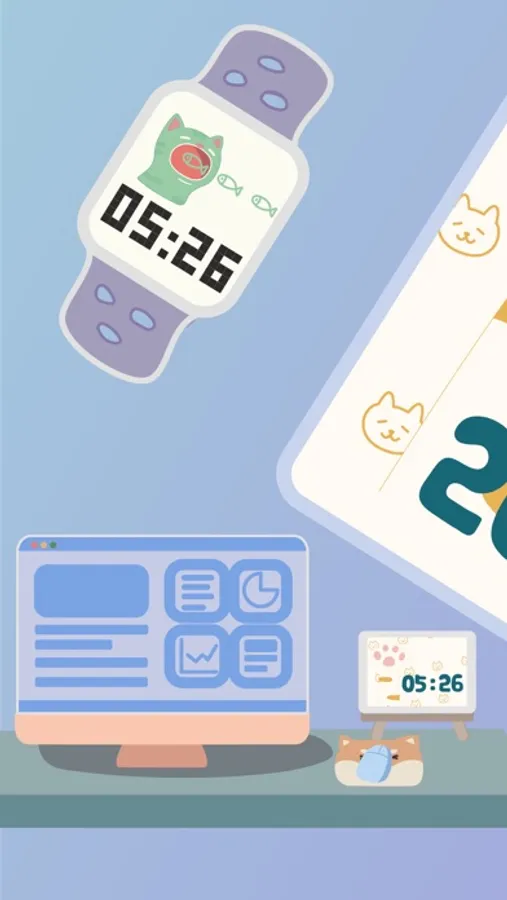 Equipped with an Alarm, a Timer, and a Stopwatch, this fun and simple PetClock helps you focus on your study, meditation practice, work tasks, and daily life routine !