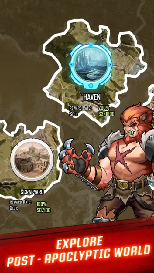 Gather your team of different kinds of species, from human to cyborgs and mutants and learn the true story of the biggest wipeout in history. As you progress through the game, secrets will be revealed. Build your own shelter, collect equipments and resources to provide your community. Be the strongest crew alive and claim your rewards in intense PvP battles and tournaments.