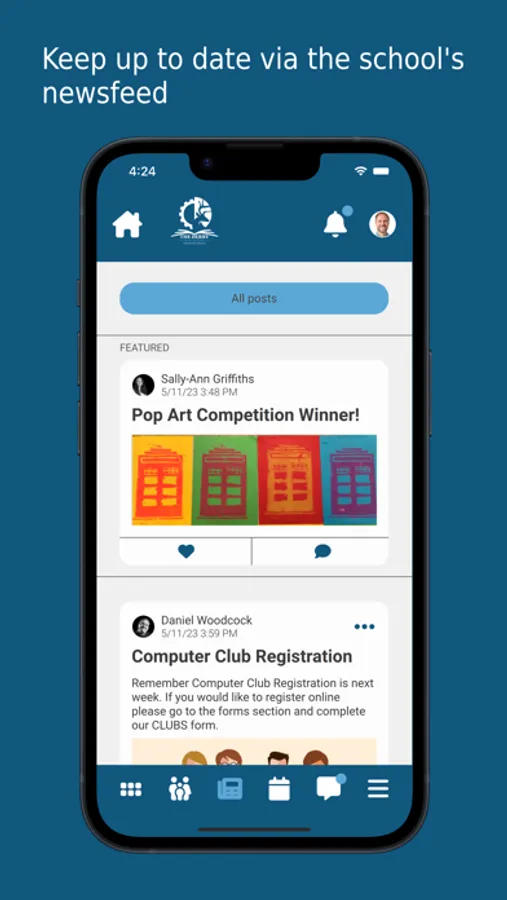 - View the school calendar and noticeboard, with information relevant to you and your child.