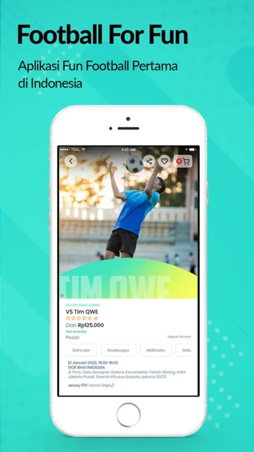 The Football For Fun (FFF) application is the First Football Match platform in Indonesia. FFF is the choice of green field professionals who don't want to lose touch, so that it is easy and can follow the match schedule according to the desired time and meet the opponent.