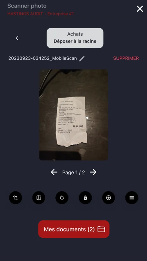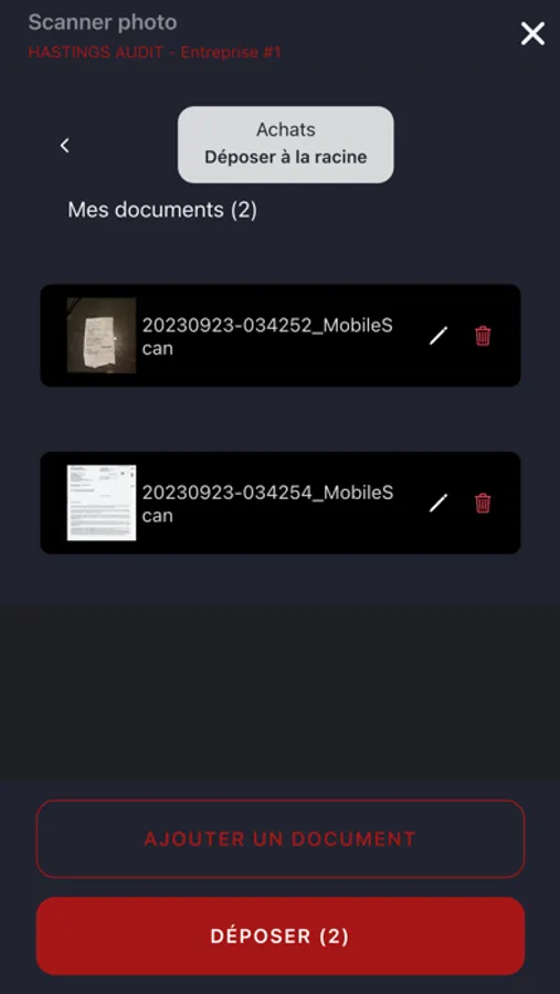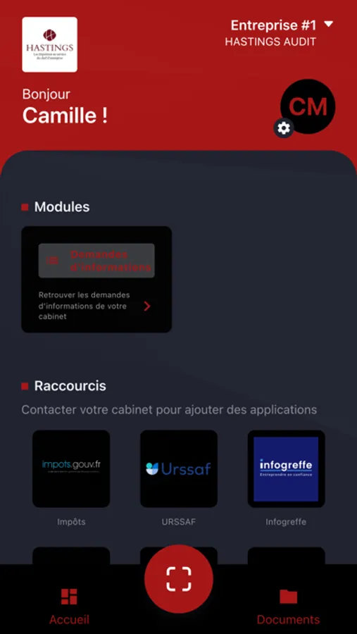 L'application HASTINGS AUDIT permet aux utilisateurs de scanner leurs documents depuis leur smartphone et de les envoyer directement sur la plateforme.