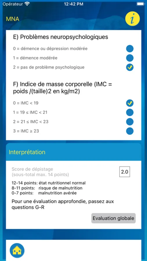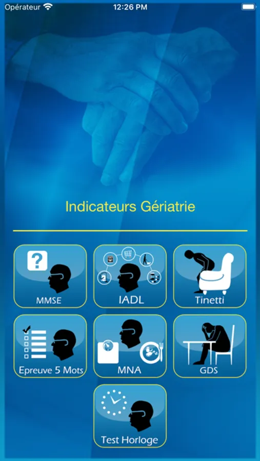 iGeriatrie est un ensemble d'outils concourant à l'évaluation gériatrique standardisée. Elle s'adresse aux médecins généralistes, gériatres, ergothérapeutes, désireux de dépister les troubles cognitifs (MMS, Test de l'horloge), la dépression (GDS), le risque de chute (Test de Tinetti), le risque de dénutrition(MNA), facilitant ainsi le repérage de la fragilité et la perte d'autonomie des personnes âgées.