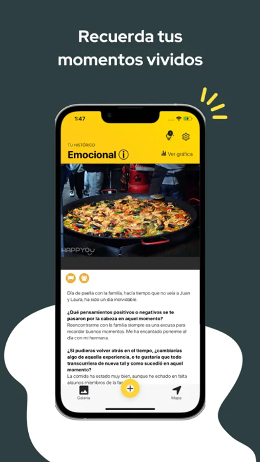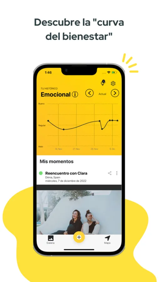 - Mapa, galería y recordatorios de tus momentos y experiencias emocionales registradas.