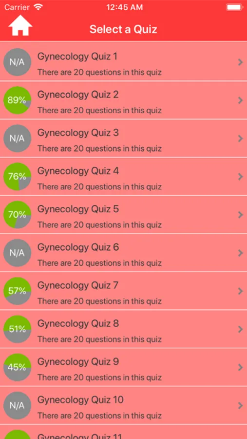 - You can review a quiz session performance details by selected a session. This screen shows quiz history performance reports.