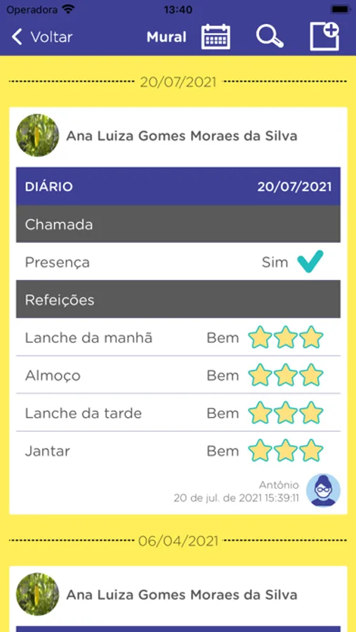 Com o app, você tem todas as funcionalidades necessárias para acompanhar o dia a dia de seu filho na palma da sua mão: