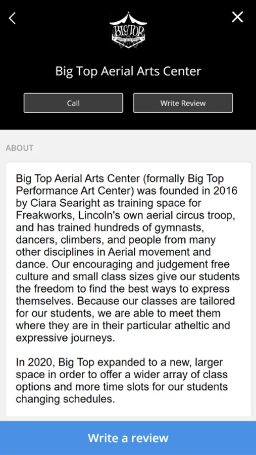 Download the app to view schedules & book sessions at Big Top Aerial Arts Center!
