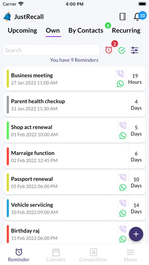Cloud-based lightweight application with web and mobile login is ready to serve you at its best. Explore and discover the manifold ways to draw benefit from the Just Recall reminder system.