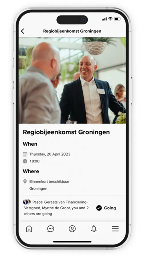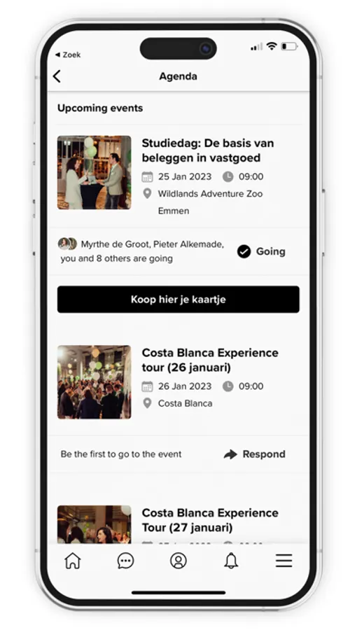 - kun je je aanmelden voor events