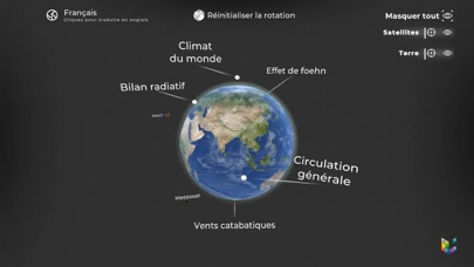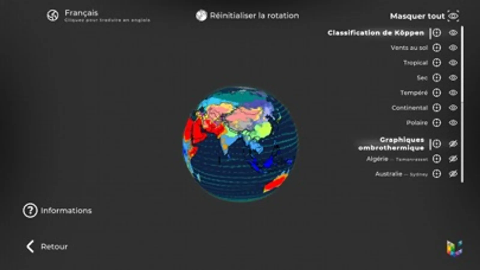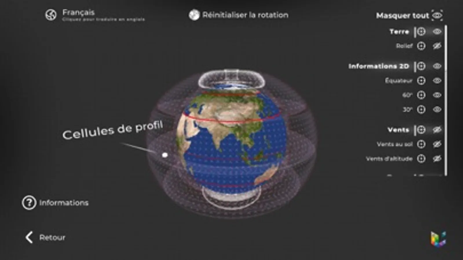 It helps to understand the distribution of climates on Earth according to Peel's classification (2007) and of the general atmospheric circulation thanks to the 3D animation in augmented reality animation :