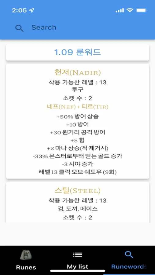 App to searching for Diablo 2's Rune Word Recipes, Rune, Craft Recipes, Horadric Cube Recipes, etc.