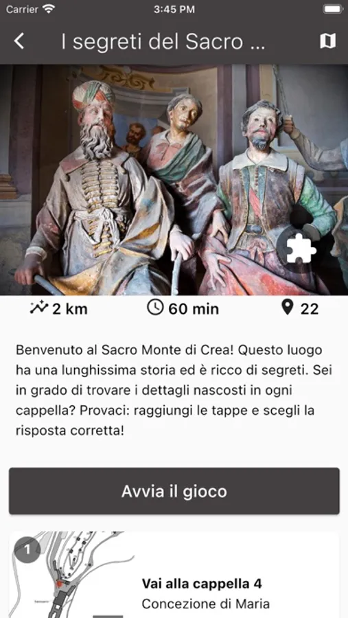 Ogni percorso svela i segreti, le storie, gli artisti, i personaggi illustri e quelli comuni che hanno creato un patrimonio artistico e culturale unico. Potrai spalancare le porte delle innumerevoli cappelle e immergerti in una visita in Realtà Virtuale. Oppure conoscere vicende pubbliche e private, ascoltando la voce dei protagonisti dell’epoca. Infine, accurati approfondimenti storici aprono scorci su di un passato che è alla base di chi siamo oggi. Puoi passeggiare liberamente da un punto di interesse all’altro, consultando le mappe dettagliate. Oppure ascoltare semplicemente l’Audio guida che accompagna il visitatore lungo i percorsi che narrano una lunga storia. Scopri infine i divertenti percorsi gioco, adatti a bambini e adulti, che mettono alla prova lo spirito di osservazione e svelano dettagli inediti.