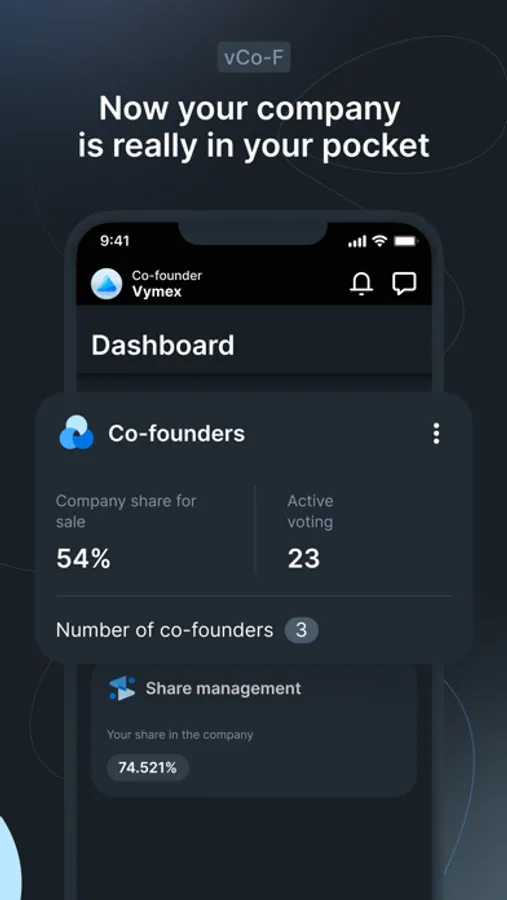 vCo-f is a product for co-founders that helps to monitor the progress of the company and the decision-making of the entire co-founding team in one application.
