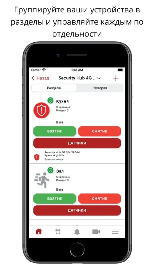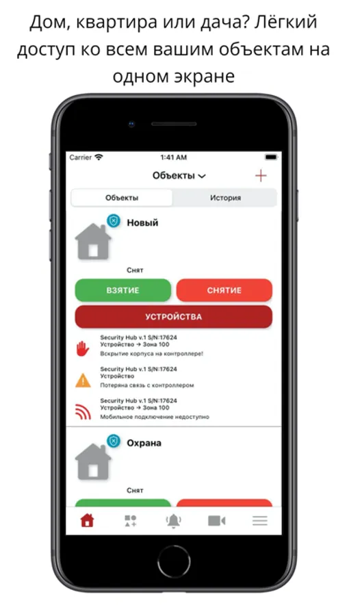 Приложение обеспечивает постоянный контроль охраняемого помещения. Вы дома, даже, когда не дома.