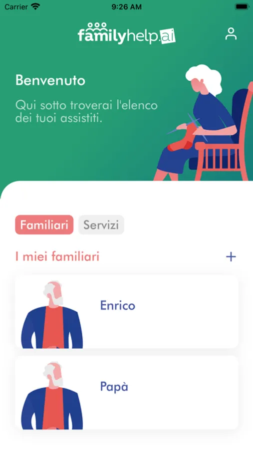 FamilyHelp.ai è una piattaforma digitale per aiutare i caregiver famigliari nella loro attività di assistenza. Consente di monitorare l'umore, pressione arteriosa, diario glicemico, temperatura, peso, ossimetria. Gestisce il piano terapeutico con l'assunzione farmaci, Ricorda scadenze e ricorrenze. Consente di trovare servizi per supportare l'attività del caregiver.