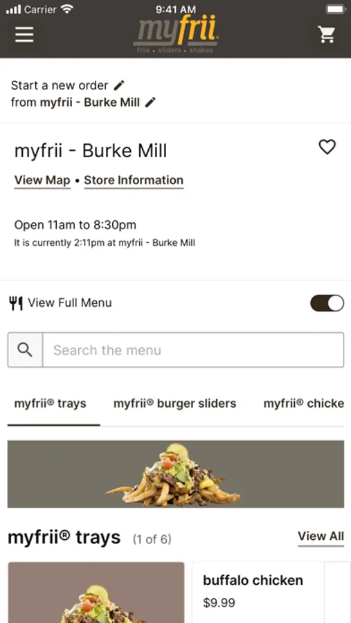At myfrii®, guests can choose from gourmet topped hand cut frii trays, Certified Angus Beef® sliders, antibiotic free chicken sliders, or all beef hot dog sliders with no bi-products or fillers. Unique made from scratch recipes from our award-winning culinary team provide a taste sensation like no other. House made mytots, from scratch dipping sauces, and premium shakes provide a one-of-a-kind experience. Only in the mood for a snack? Try our snack friis, our hand cut friis topped with international flavors.
