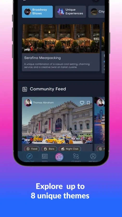 Gallivant is the app that understands your NYC cravings, tailoring every detail to your preferences. Whether you're a foodie exploring NYC's diverse culinary scene, a culture enthusiast soaking in the city's arts, or an outdoor lover seeking adventure in Central Park, Gallivant adapts to your NYC lifestyle, ensuring your journeys through New York City are uniquely yours.