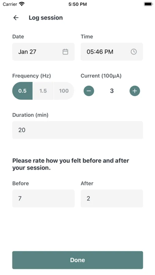 Quickly log the details of your Alpha-Stim sessions, such as date, time, and current level, and rate how you felt before and after your session. Then see which settings gave you the best results, letting you personalize your treatment.