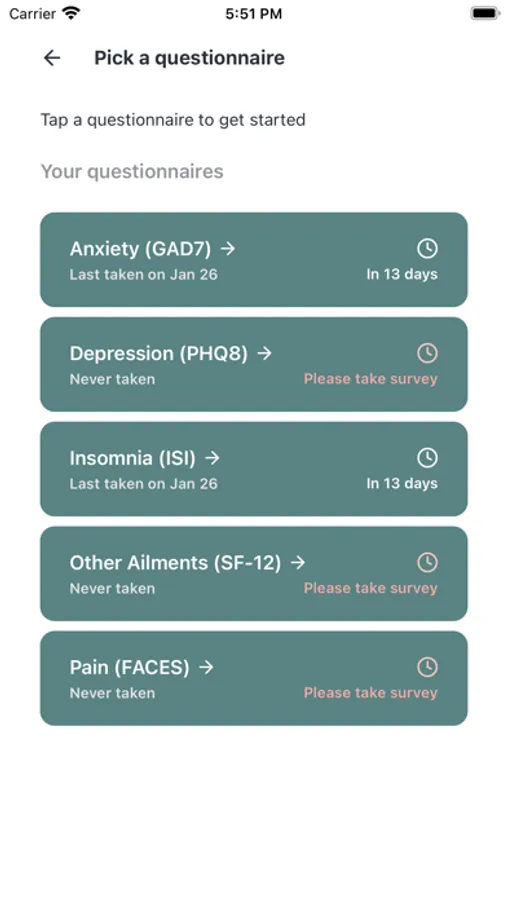 Every 2 weeks, answer a few questions about how you are doing. These clinically validated surveys are the gold standard used by clinicians to gather powerful information about your mental health and wellbeing.