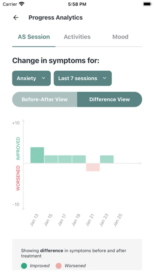 See your progress as you track your sessions, activities, and moods. Which Alpha-Stim settings give you the best improvement? How long before you started feeling better? What daily activities boost your mood, and which ones make things worse? Everyone’s Alpha-Stim and mental health journey is different - and now you can see yours in real time.