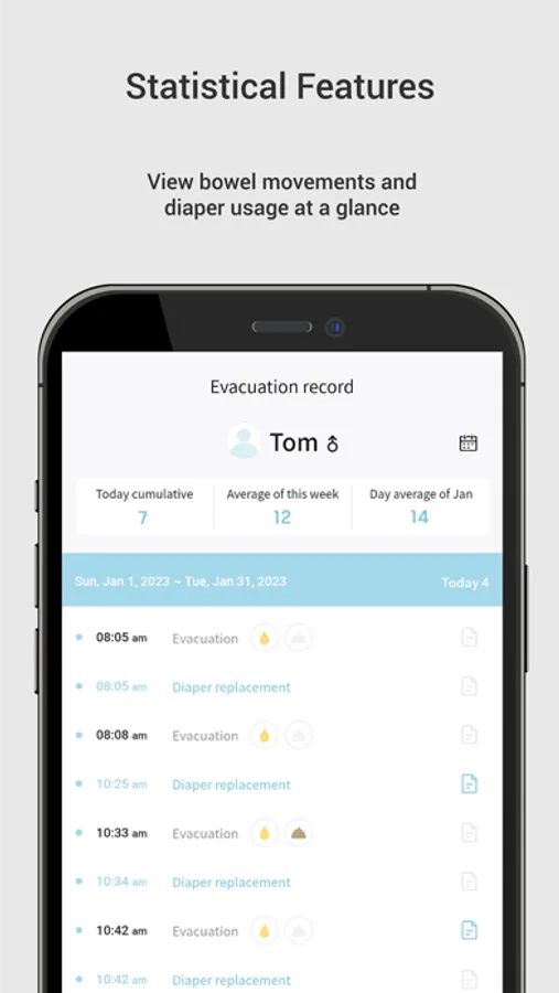 2. Statistics/Recording makes it easy and convenient to check your child's bowel health at a glance.