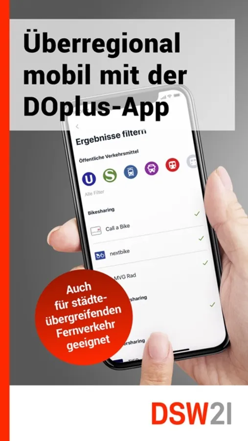 Die DOplus-App wurde im Rahmen von „Mobility inside“ entwickelt, einem gemeinsamen Projekt der deutschen öffentlichen Verkehrsbranche. Ziel ist es, Tarife und Auskunftssysteme zu vernetzen, so dass Fahrgäste verkehrsmittel- und regionsübergreifend von Tür zu Tür buchen können – ganz einfach via App.