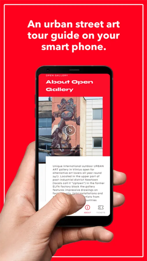 The Open Gallery mobile application gives you the opportunity to find five different audio guides that allows you to get a closer look at the most impressive urban street art works in the former ELFA factory yard located in Vilnius, Newtown.