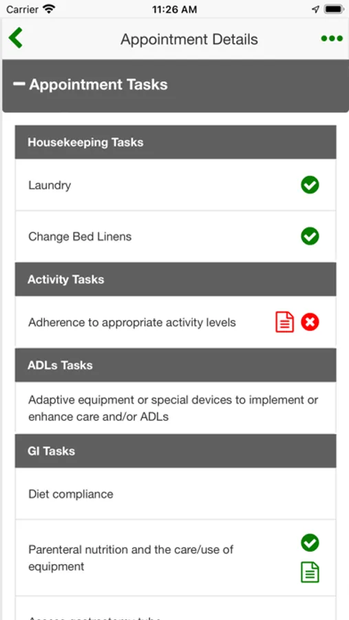The app does not require a continuous cellular connection. It is designed to enable staff to document appointments whether online or disconnected – allowing providers to serve rural areas or homes without a Wi-Fi connection. Synchronization can take place using Wi-Fi or cellular connection whenever available – on the road or in the office