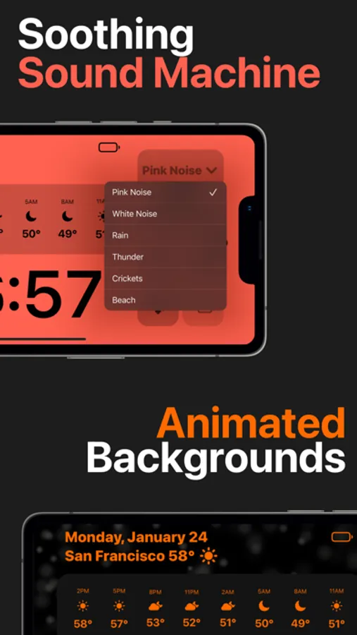 ALL USERS have FREE ACCESS to the sound machine, clock, and one animated background. And NO ADS EVER, for ALL USERS!