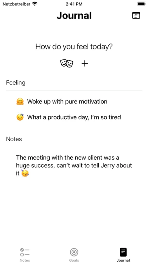 With the help of the journal, you can keep track of your emotions and write down your thoughts in the notes list.