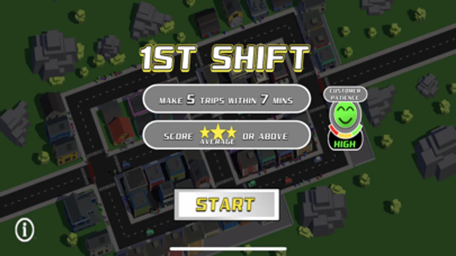Complete the specified number of trips within the time limit for your shift, while keeping your passengers happy.