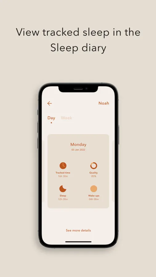 Start a sleep tracking session when you put your baby to sleep and let us count the time for you. When the nap is over, it will be saved to the sleep diary. Add a note if there are things that might have affected your child’s sleep, for example: what your baby ate that day or if your baby was sick.