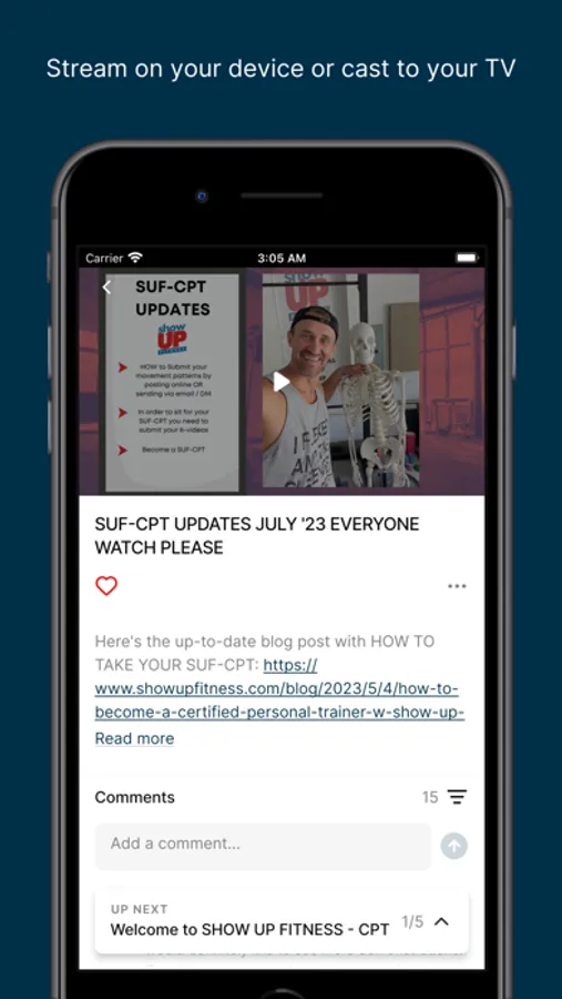 Show Up Fitness offers an auto-renewing subscription that will allow you unlimited access to content on all your devices. Payment is charged to your Account at confirmation of purchase.