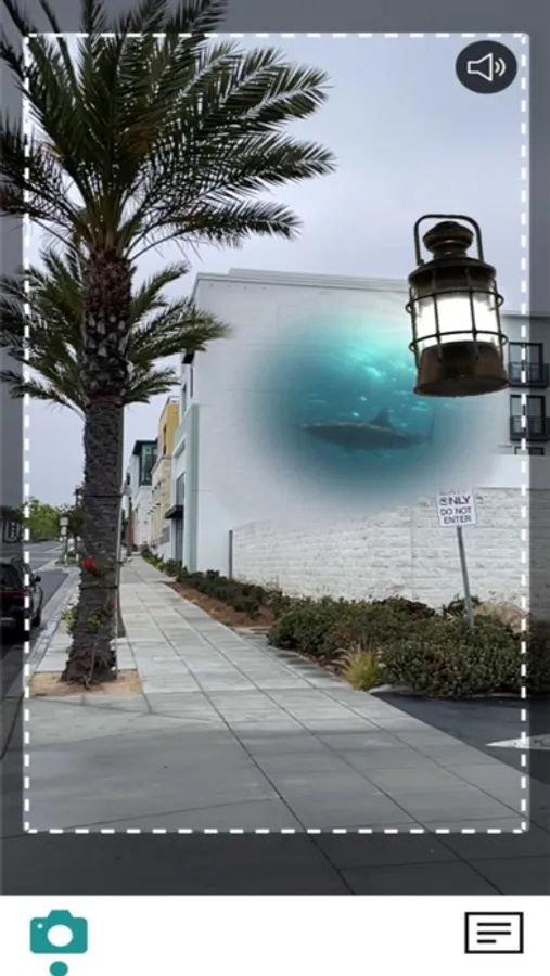 Once in safe zone, aim your phone at the mural Please remain aware of your surroundings while using this app. DO not use app while in the street. Obey all ordinances and traffic laws.