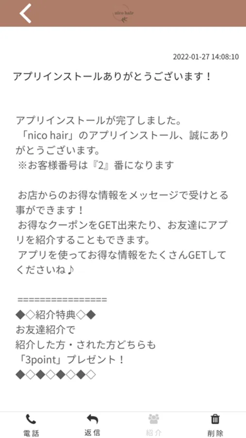 nico hairのアプリをSNSを通じてお友達に紹介する事ができます。