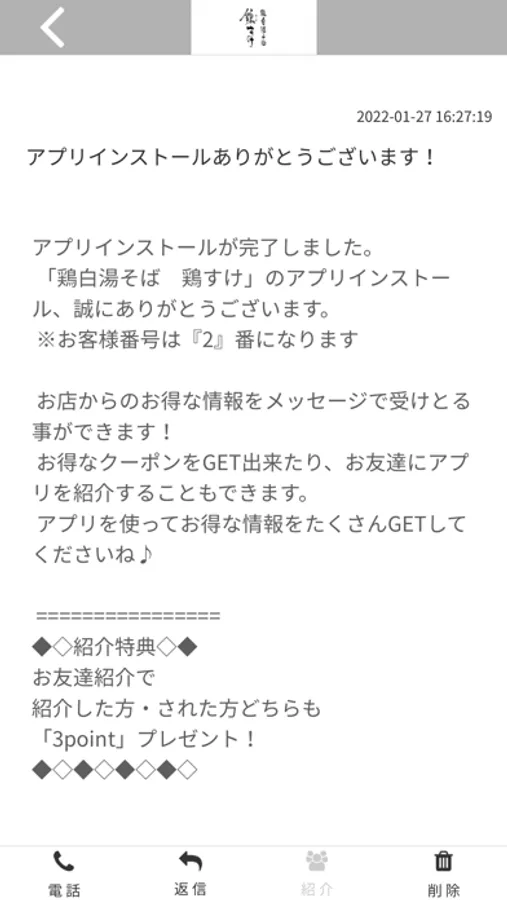 鶏すけのアプリをSNSを通じてお友達に紹介する事ができます。