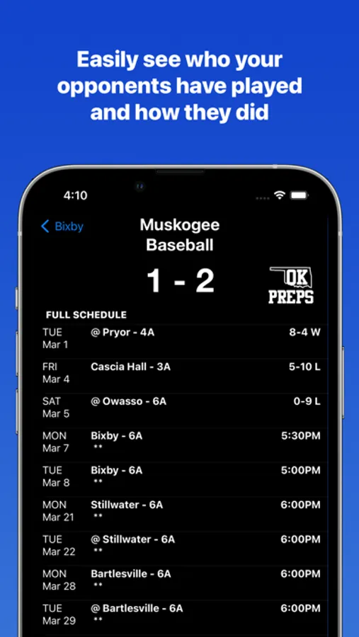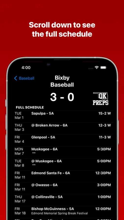 OK Preps provides Oklahoma high school sports scores and schedules. Sports include baseball, basketball, football, golf, soccer, softball, swimming, volleyball and wrestling. Every school in Oklahoma from class 6A to class C is covered. Schedules available for all sports, and scores are available for most.