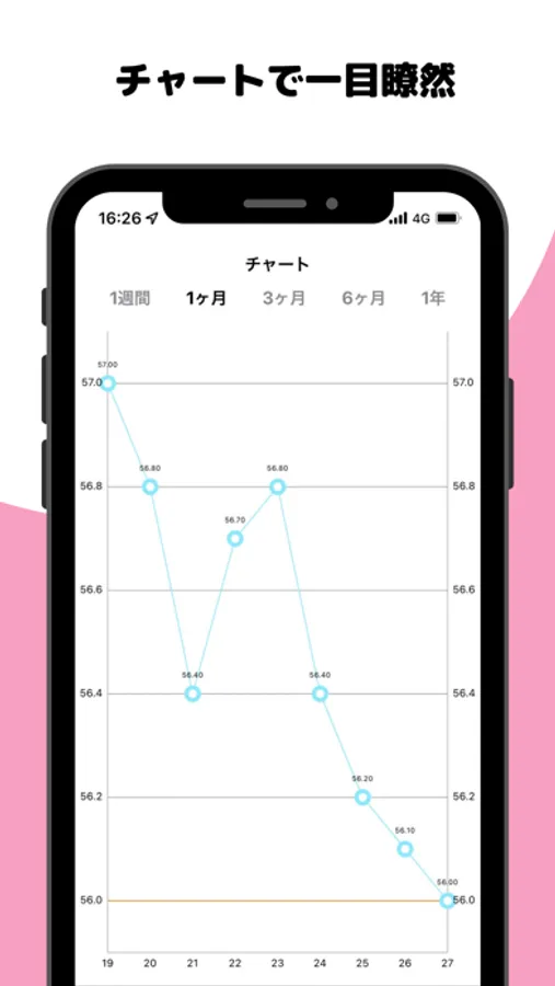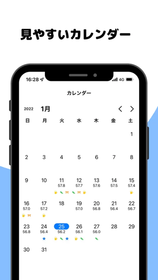 ・体重記録はカレンダーとチャートで一目瞭然!