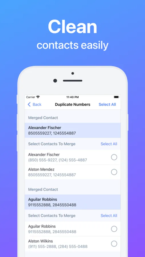• Manage your contacts: Merge duplicate contacts, Remove incomplete information contacts