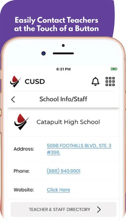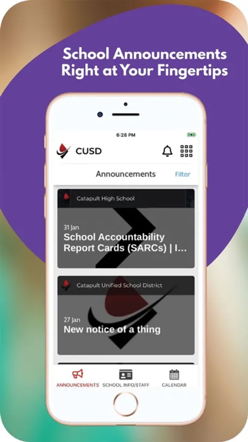 The app includes information for the district and all schools. Filter by the school your child attends to feature information for that school.