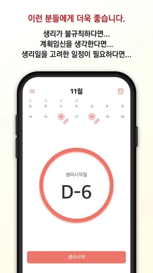 - 촬영모드에서 촬영된 검사 결과들은 AI 분석을 통하여 당신의 생리 예정일을 알려 줍니다.