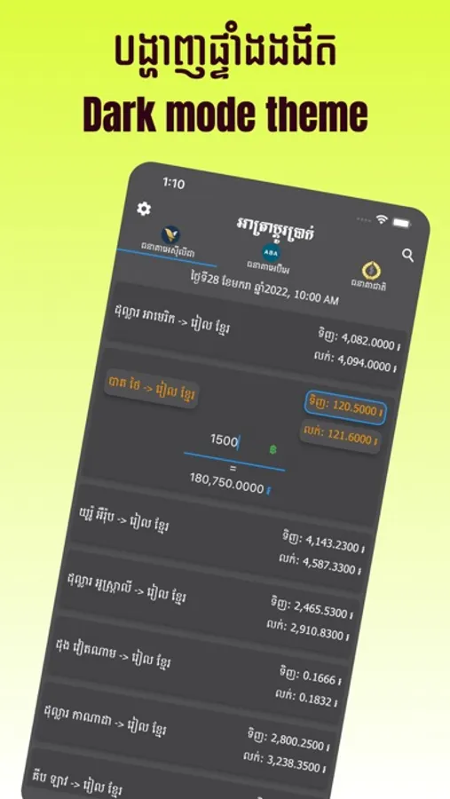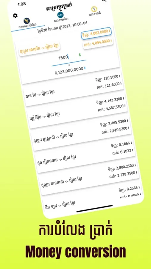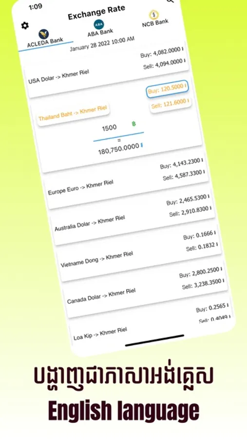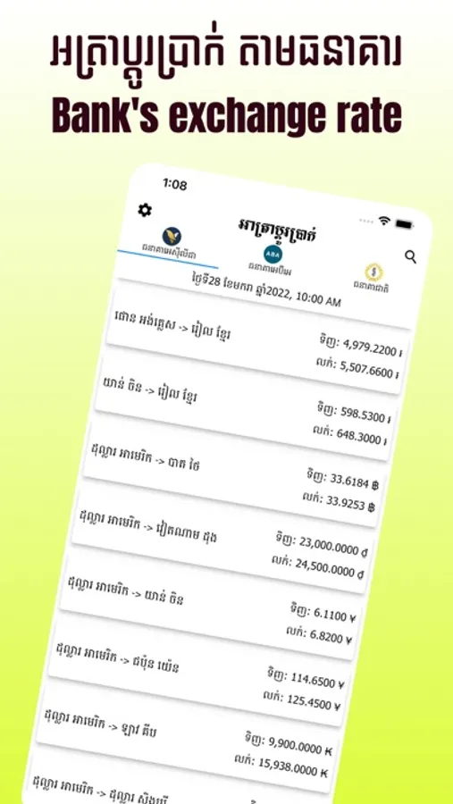 Khmer Exchange Rate brought to you with 3 banks API such as: