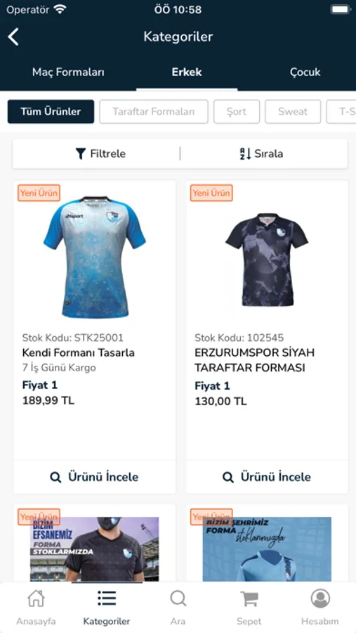 * Ürün kategorilerinde filtreleme yapabilirsiniz.