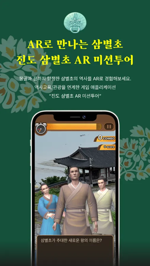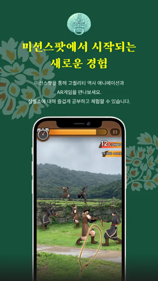 ∎ 미션 장소를 통해 고퀄리티 역사 애니메이션과 증강현실 게임으로 삼별초에 대해 즐겁게 공부하고 체험해 볼 수 있습니다.