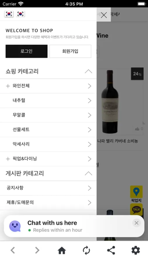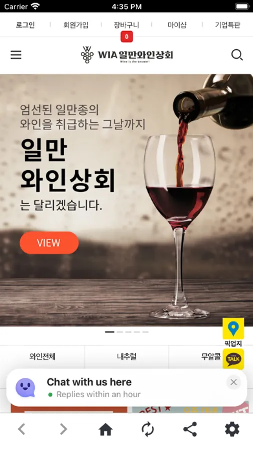 자신이 좋아하는 와인을 온라인에서 구매하고, 본인의 가까운 곳에서 픽업 하거나 또는 픽업매장에서 저렴한 콜키지 비용으로 즐기자