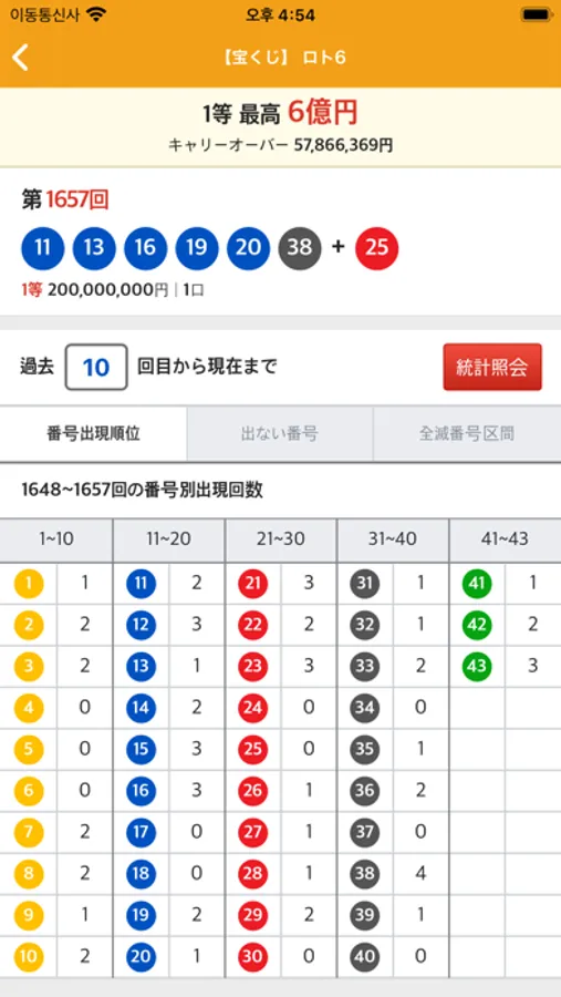 - 抽選回別当選番号と統計情報を確認