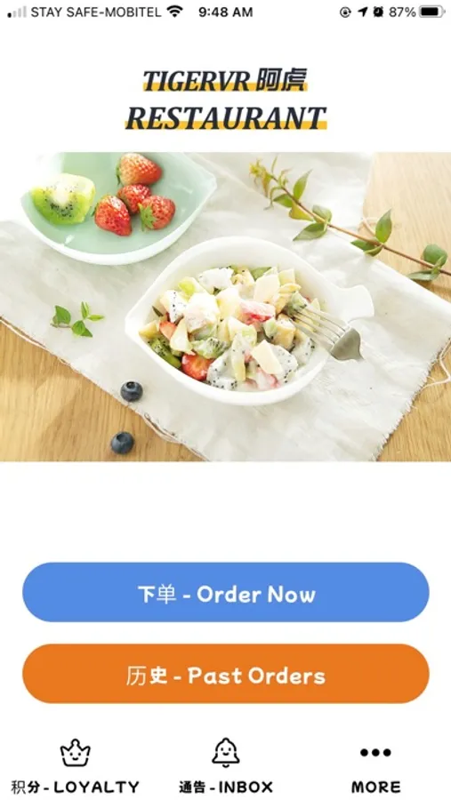 Tiger VR restaurant ordering platform for customers rewards tracking