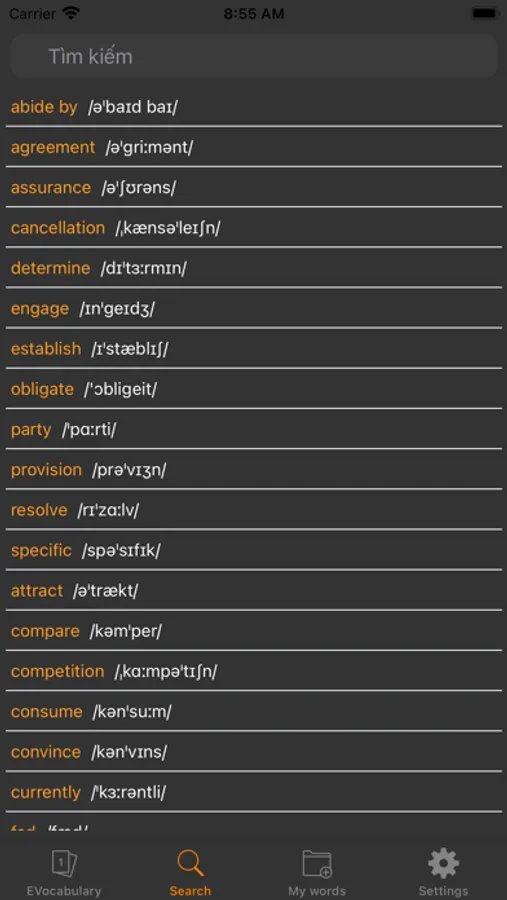 + List of words: sorted by topics that make it easier for you to find and accompanied by illustrations, transcriptions, examples, and standard pronunciation.