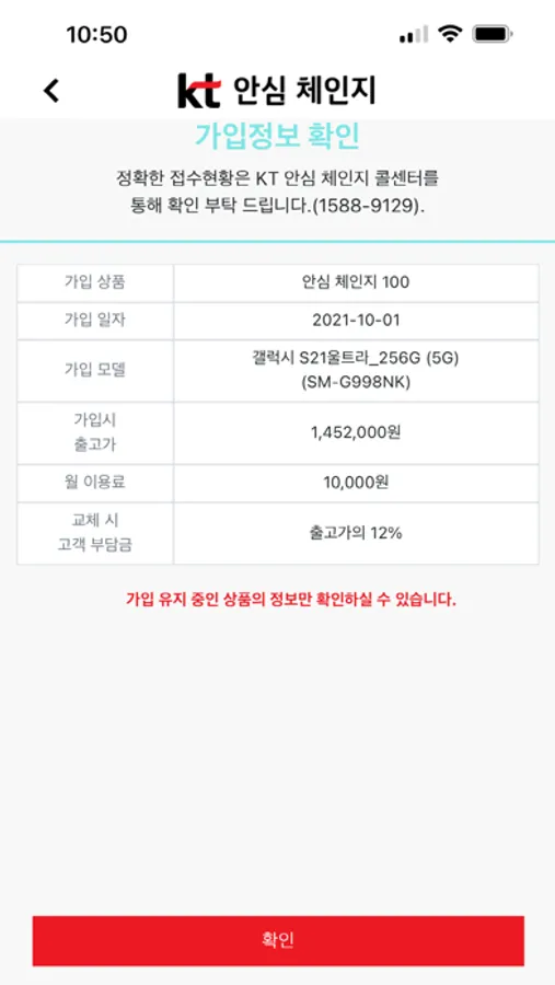 1) 가입정보 확인 : KT 폰 교체 센터 프로그램 가입 정보 확인 가능