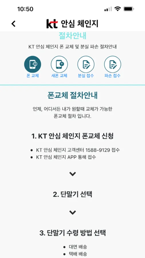 2) 폰 교체 : 폰 교체 신청을 편리하게 접수 및 결제까지 한번에 가능.