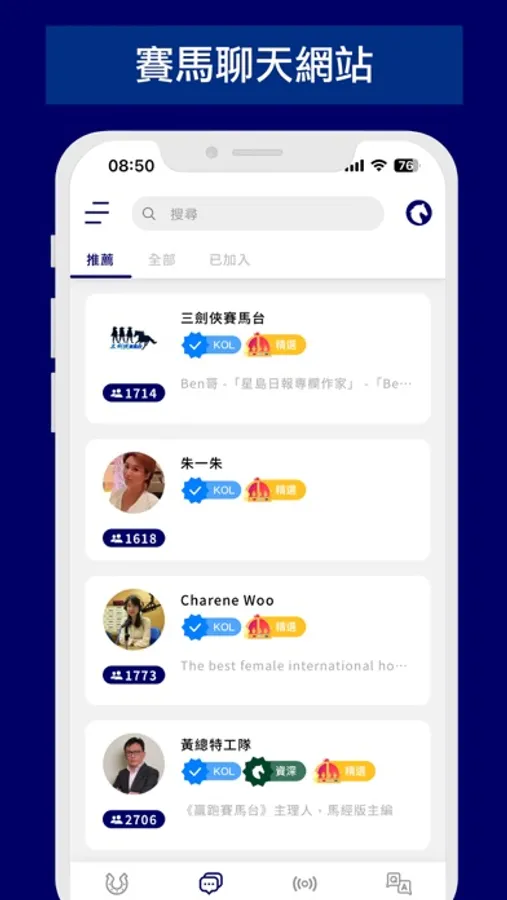 Horse racing KOLs can answer your questions in real time and track the latest masters' experience, so that you can be successful on horse racing day. A horse racing discussion and learning platform tailored for you.